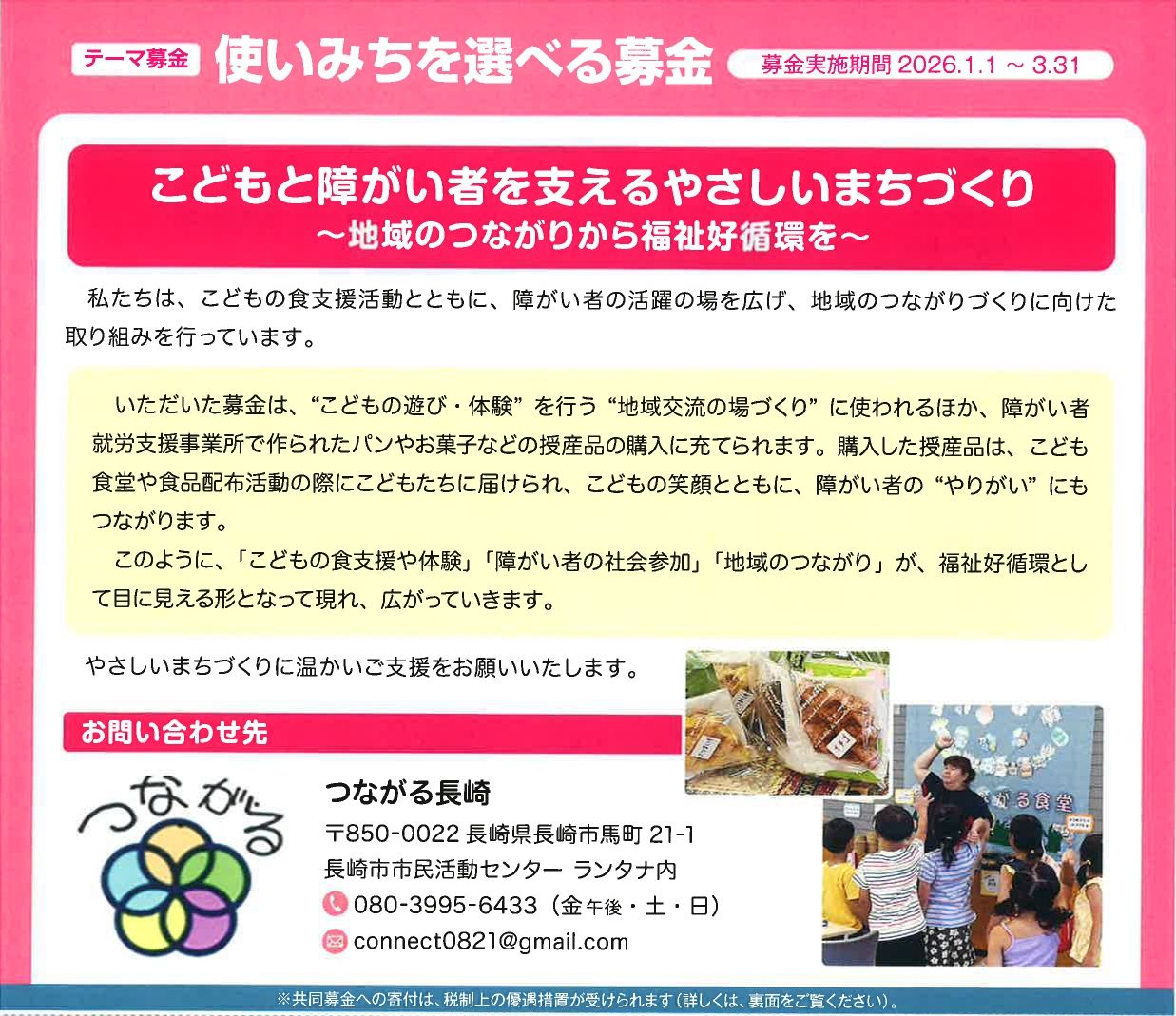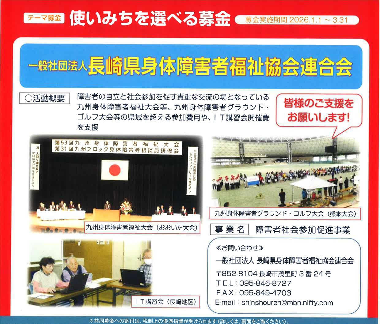 皆様の温かいご協力をお願いいたします。 社会福祉法人長崎県共同募金会 |