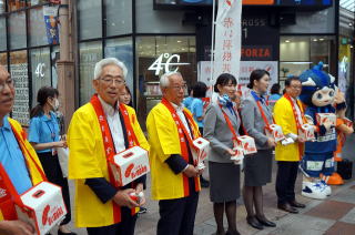 V・ファーレン長崎、長崎ヴェルカでは、社会貢献の一環として毎年共同募金運動へご協力いただいております。 運動初日、長崎市の浜町アーケードで開催した街頭募金には、V・ファーレン長崎のヴィヴィくんと長崎ヴェルカのLUKAに参加いただき、市民の皆様に募金への協力を呼びかけていただきました。 V・ファーレン長崎、長崎ヴェルカの皆さんご協力有難うございました。
