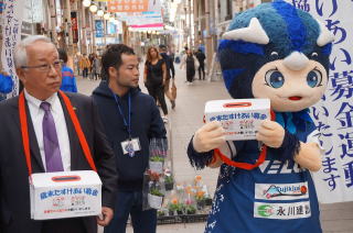 V・ファーレン長崎、長崎ヴェルカでは、社会貢献の一環として毎年共同募金運動へご協力いただいております。 共同募金運動初日の10月1日、長崎市の浜町アーケードで開催した街頭募金には、V・ファーレン長崎のヴィヴィくんと長崎ヴェルカのLUKAに参加いただき、市民の皆様に募金への協力を呼びかけていただきました。 また、歳末たすけあい運動初日の12月1日に長崎市の浜町アーケードで開催した街頭募金には、長崎ヴェルカのLUKAに参加いただき、市民の皆様に募金への協力を呼びかけていただきました。